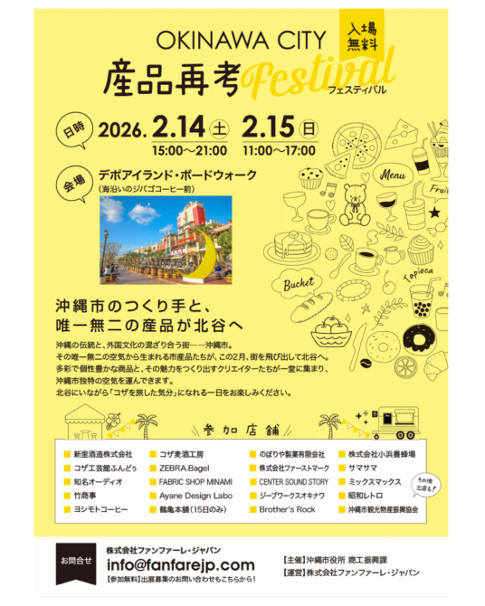 多彩で個性豊かな商品と、その魅力を作り出すクリエイターたちが一堂に集まり、沖縄市独特の空気を運んできます。